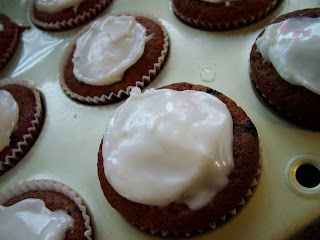 I decided to use a banana recipe which has been in our family for years as banana cake, and which I have modified in recent years to become spiced. I simply added blueberries as well, and altered the cooking time, and they turned out rather deliciously (if I do say so myself!). If you are interested, I shall post the recipe below: