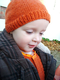 In the vein of orange jumpers, Élysée absolutely lives in a lovely orange cardigan and hat that my Nanna made for him last Christmas. Another rather strapping young man....
