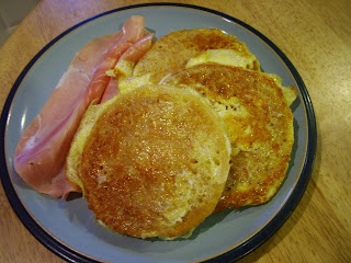 We had a lovely birthday breakfast, complete with Eggy crumpets and ham (masquerading as bacon for the purpose of the breakfast!)... (for Al)