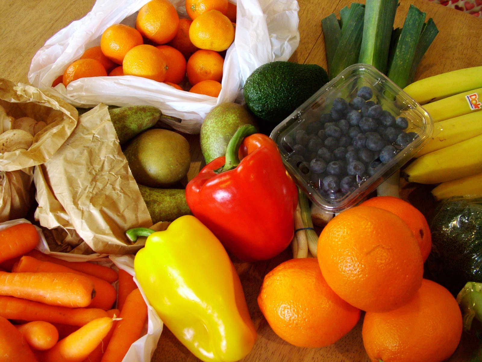 This morning we went to the market. Look at all of this lovely fruit and veg we got!