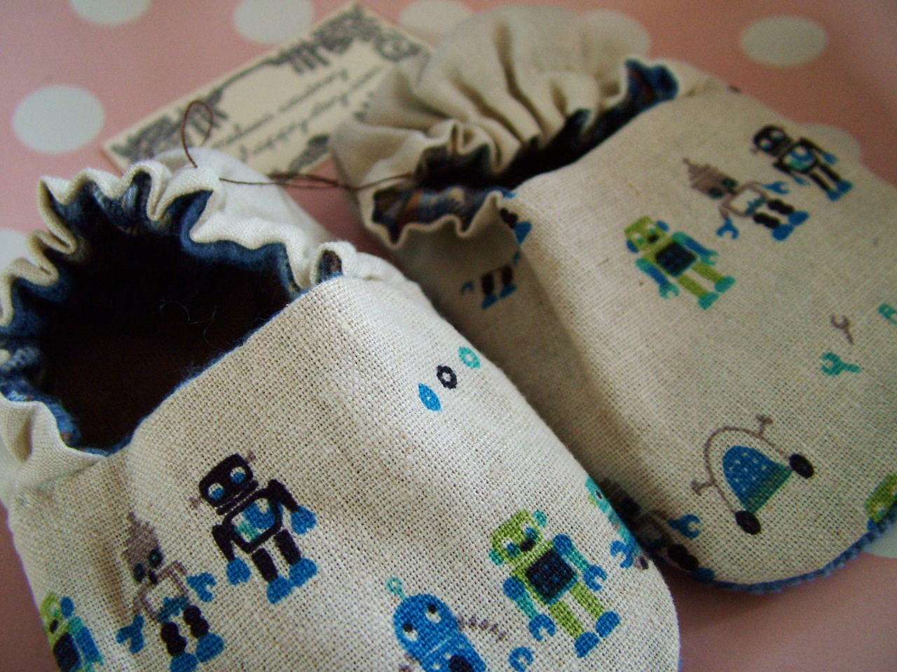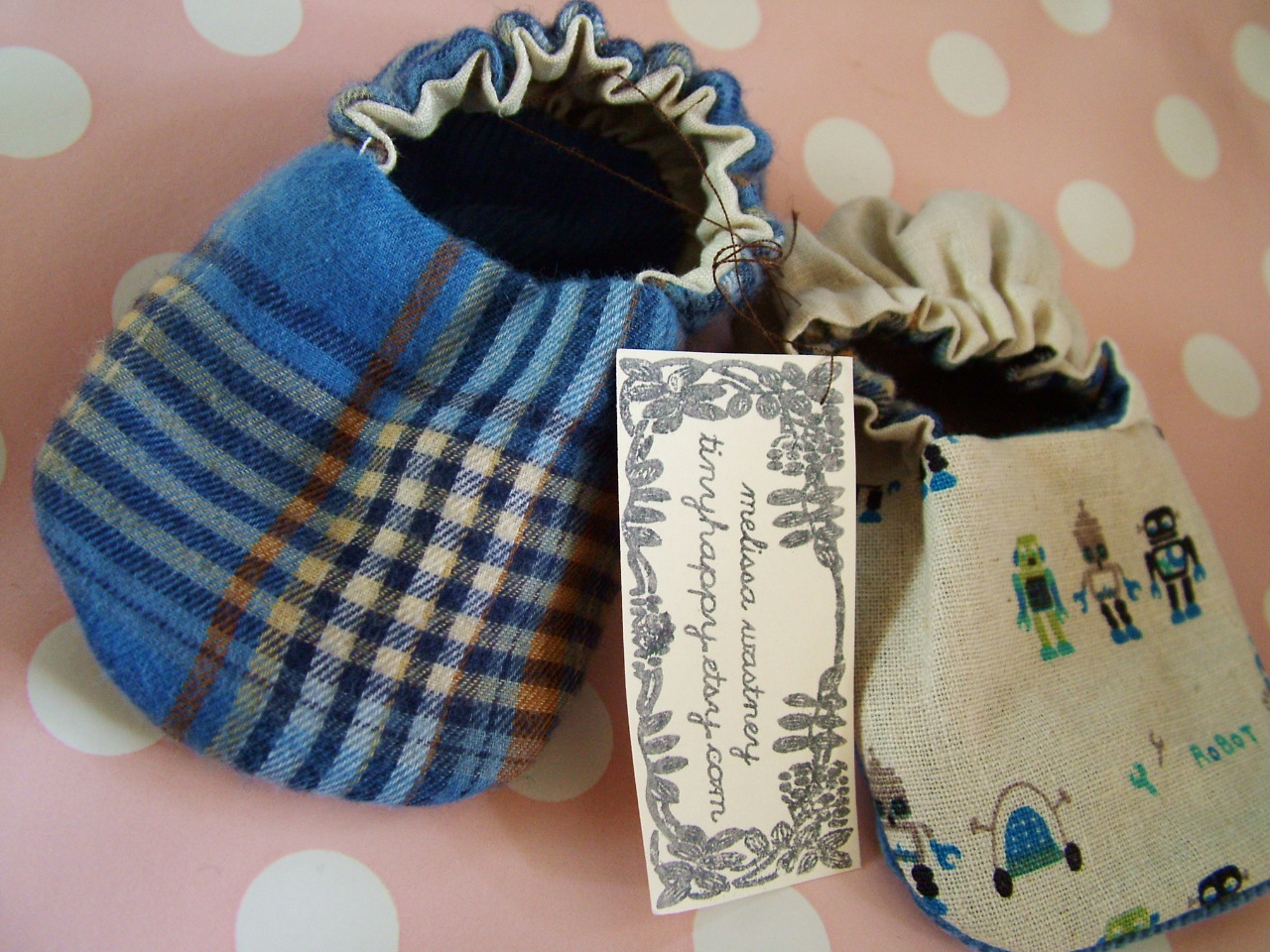 A little while ago I allowed myself an indulgence. A beautiful pair of hand made baby shoes, made by Melissa of Tiny Happy. Even though I knew we were having a girl, at the time there weren't any girl shoes in the etsy shop, and I did love these beautiful little ones.