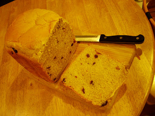 Today I had my first resounding success with our new bread maker. A friend recommended cinnamon and raisin bread (thanks Mel!) and since I am finding it hard to think of things I'd like to eat in the mornings currently, I decided that might be a tempting breakfast choice.