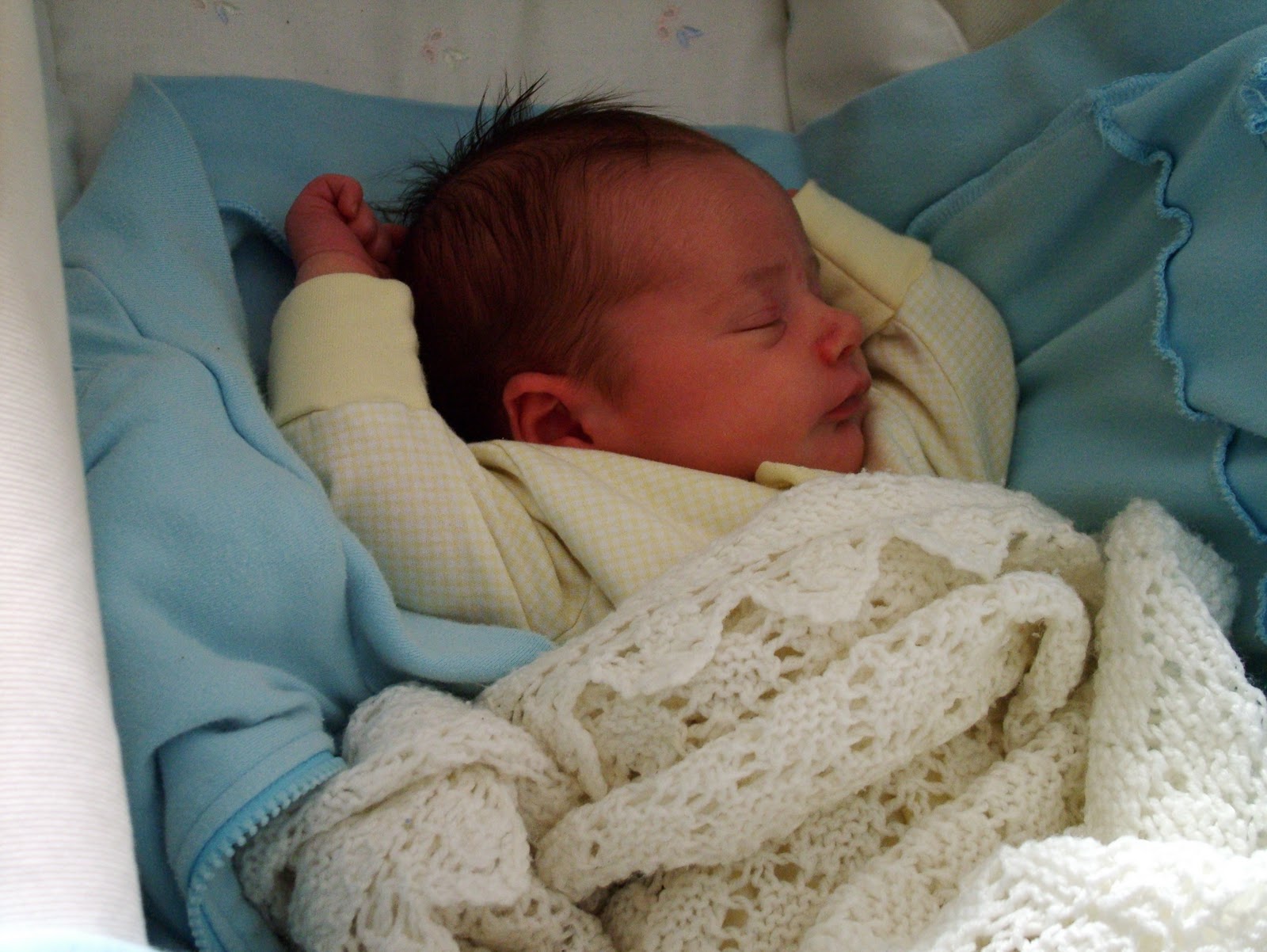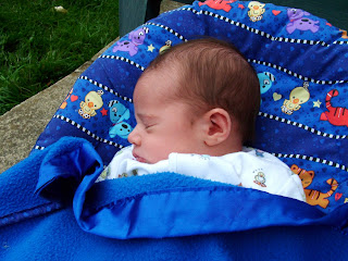 P is starting to be a little more settled when she is put down, and yesterday she had a lovely sleep in her little bouncy chair in the garden whilst we enjoyed the fresh air, and today she had a lovely long sleep in her pram allowing me to do a spot of knitting in the garden- what a luxury! (I only hope she doesn't decide to do too much of her 'awake time' during the middle of the night though!)