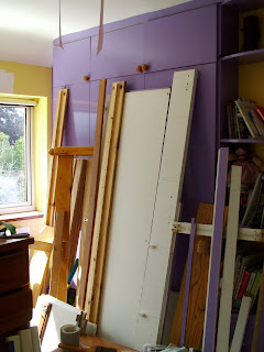 I'm delighted, because when we moved in, the guest room was really quite a bright yellow and purple, and it is now a warm white and (soon to be) corn-flour blue. Much Better. I am just getting a bit of a headache trying to distinguish between the white emulsion and the "Cotton White" which is much warmer and nicer.